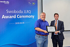 El premio demuestra nuestro nivel de calidad, que ha alcanzado el requisito de primer nivel de CJLR. También muestra, que Swoboda Kunshan es considerado como uno de los mejores proveedores, que tiene una buena gestión de fabricación, excelente calidad, remdimiento, y alta eficiencia de entrega. El equipo de Swoboda Kunshan está feliz y orgulloso , de ser reconocido positivamente por Jaguar Land Rover por su calidad y serviciio dedicado.