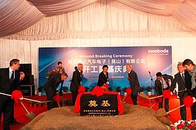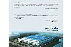 Über 60 Gäste waren bei der Zeremonie präsent, darunter auch als Ehrengäste der Bürgermeister von Kunshan und der stellvertretende Generalkonsul Deutschlands in Shanghai. Swoboda wurde vertreten durch die beiden Gesellschafter Thomas Freudenberg und Matthias Groth sowie den CEO Michael Follmann. In seiner Ansprache übermittelte der Bürgermeister Jian Gu die Glückwünsche und hob die erfolgreiche Zusammenarbeit zwischen der Industriezone und Swoboda hervor. Angestoßen wurde stilecht mit bayrischem Weißbier sowie chinesischem Tee. Festlicher Höhepunkt im Anschluss an die traditionelle Zeremonie der Grundsteinlegung war ein Feuerwerk. Gemäß der chinesischen Tradition dient das Himmelsspektakel dazu, die Götter positiv für den Bau zu stimmen.