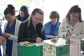 wurden Obstkörbe, Gymnastikbälle, Rucksäcke, Sporttaschen und Handtücher verlost.