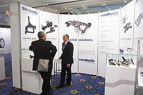 Bei beiden Veranstaltungen mit dabei waren auch Vertreter von Swoboda. Ein besonderer Höhepunkt auf dem neu gestalteten Messestand war die Ausstellung der Trägerbaugruppe für das aktuelle Daimler 7 Gang Getriebe NAG 2 7G-Tronic Plus. Die zahlreichen Besucher konnten dieses technisch sehr anspruchsvolle Bauteil aus nächster Nähe betrachten und mit Swoboda Experten die Besonderheiten diskutieren.